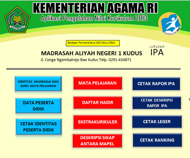 Aplikasi Raport Kurikulum 2013 jenjang Madrasah Tsanawiyah ... from 2.bp.blogspot.com Madrasah aliyah (ma) dan madrasah tsanawiyah (mts) yang telah melaksanakan uambn, maka peserta ujian akan mendapatkan sertifikat hasil uambn (shuambn). Ujian akhir madrasah berstandar nasional (uambn) a.